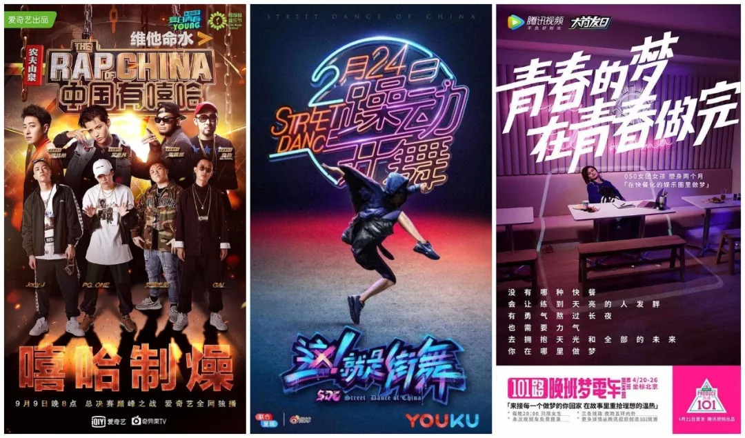 于是早在去年年底,三家视频网站就已经在偶像养成、街舞、机器人、喜剧脱口秀、萌宠+萌娃等多种类型中都准备了大龄极为相似的节目,不仅使彼此竞争加剧,也助长了这一波“选秀热潮“的出现。从《中国有嘻哈》再到《偶像练习生》、《这!就是街舞》、《热血街舞团》,主流的内容市场开启了”大投资大回报“的模式。