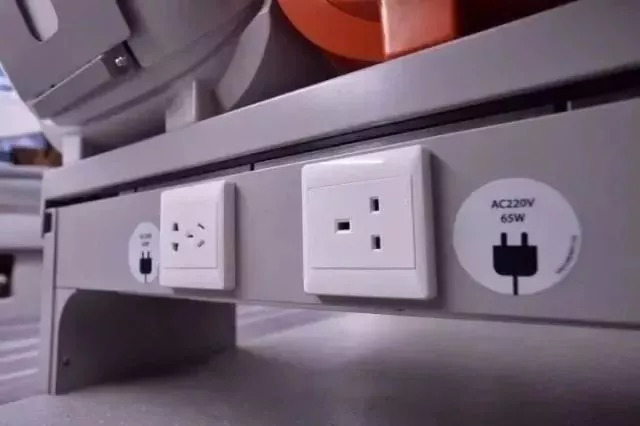每个座位下都设有两脚及三脚电源插座,再也不用担心手机没电。