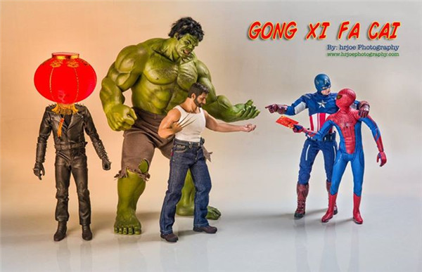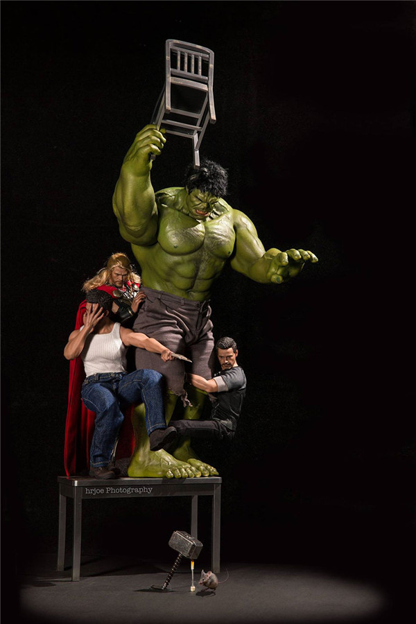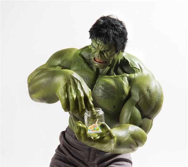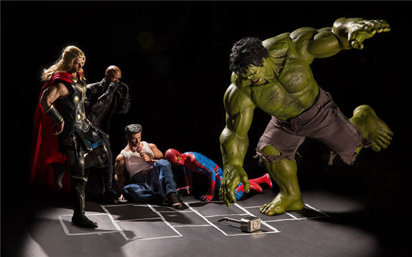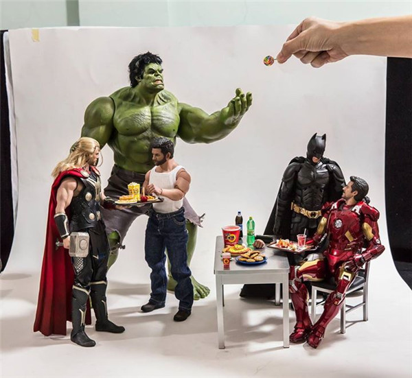 配合灯光和布景,Hardjo为超级英雄们摆出完美的姿势,有时甚至“肢解”或脱光他们。前期的煞费苦心加后期PS,这么逼真可爱的生活场景,我才不信你能忍住不笑!