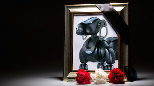 它们在祭台上一字儿排开,每只上盖着一张标签,标明归属地和主人的名字。这些是索尼推出的被称为“爱宝”(AIBO,Artificial Intelligence Robot)的电子机器宠物,是被赋予了自我学习及成长能力的人工智能机器狗。
