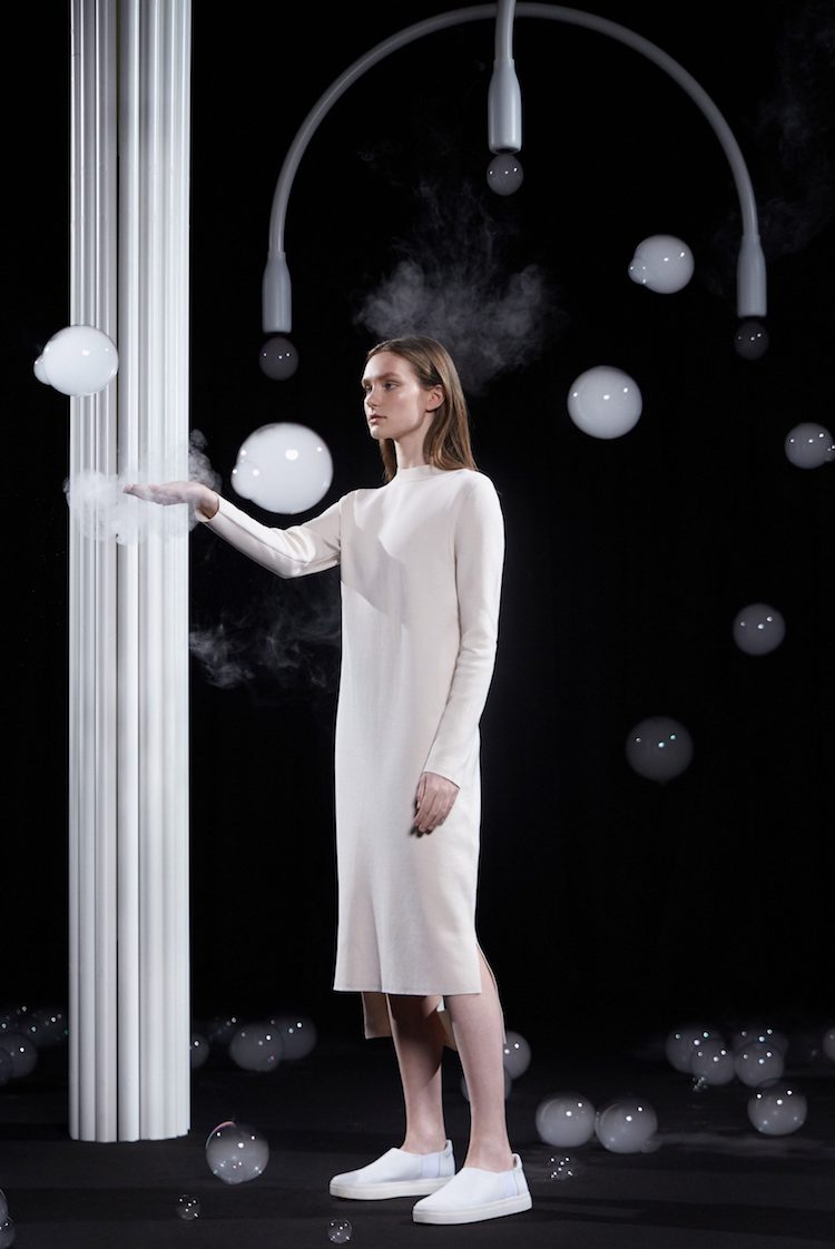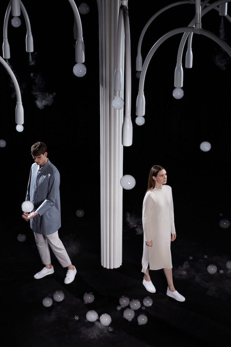 “我觉得Nendo和COS在美学上对于简洁的追求、对于细节的注重是非常一致的,”Nendo创始人佐藤大解释,“COS的白色衬衫看起来不能更简单了,但却蕴含了一切最妥帖的设计思维,所以这个装置我决定让衬衫自己说话。”