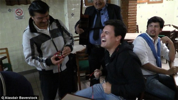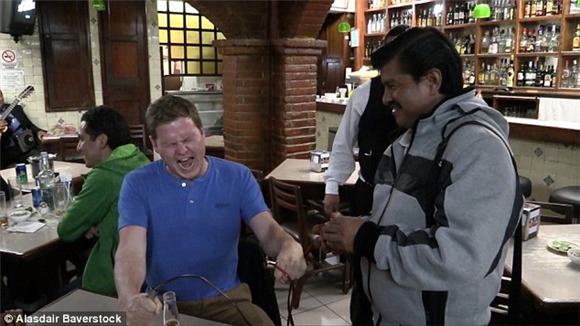 “如果达到你能承受的电压上限时,你会感到大脑的刺痛感,”Ignacio Alonso说。他在承受90伏电压后尖叫求饶,接下来他必须接受惩罚,喝下好几杯mescal,一种类似于龙舌兰酒的烈酒。