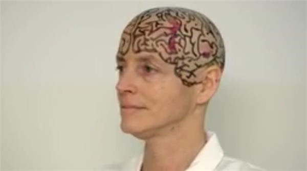 剃光头发之后,她请人在她的头皮上画出了大脑各区域图: