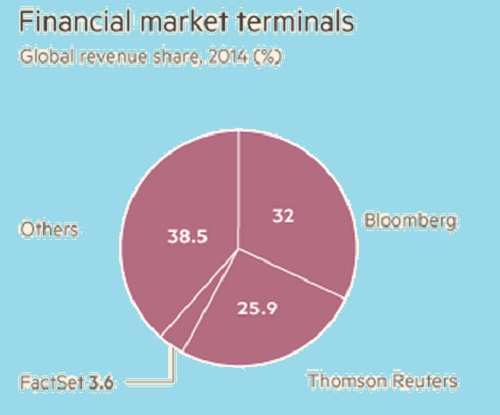 在金融终端市场,彭博公司在短短30多年时间里就超过有着150年历史的汤森路透,成为全球最大金融信息提供商,靠的就是这台机器。除了汤森路透,彭博终端的竞争对手还有FactSet Research Systems、道琼斯和Capital IQ。