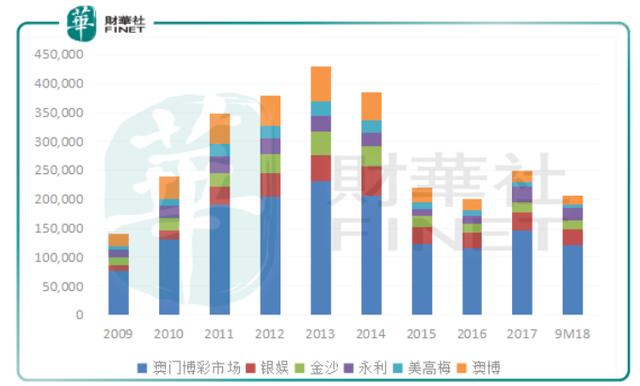 从图中可以看出,这八年来游客增幅基本保持平稳,但博彩收入增幅却在2014-2015年期间大幅下滑,这是因为中央有关政策,导致这个时期的贵宾博彩收入显着下降。贵宾厅收入一直占据博彩收入的大部分,2018年前三季,贵宾厅收入占澳门期内累计博彩毛收入的55.4%。当时贵宾博彩收入倒退所带来的负面影响令澳门博彩市场一片哀嚎,各运营商开始反思,并计划将更多资源投入到利润较高的中场博彩市场。