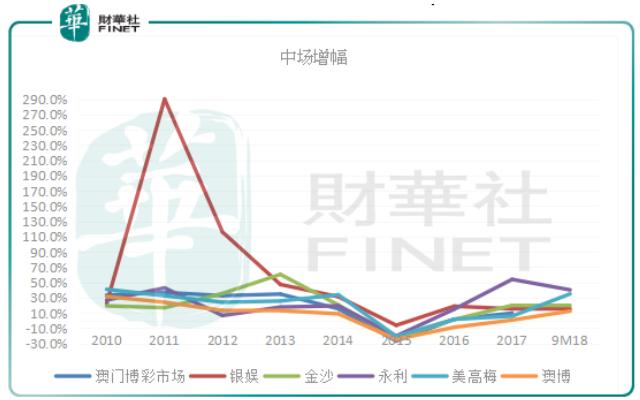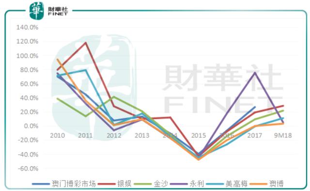我们再来看看这些企业今年的业务表现。尽管美高梅于2018年2月13日推出新项目美狮美高梅,2018年前三季的投注额增幅仍不及银娱,可见后者的获客实力强劲。