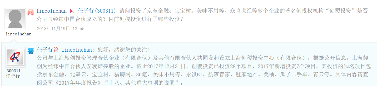 “独角兽”的风刮完了,“科创板”的热度又被炒了起来,这次的主角是任子行(300311)。11月19日,任子行在投资者互动平台上表示,公司投资设立的九合信息安全、九合文化创意、创稷投资和富海永成四个产业并购基金投资了京东金融、北森云、宝宝树、猎聘网等知名项目,并称上述项目都非常优质,不排除未来有登上科创板的可能性。