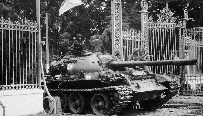 1975年4月30日,北越军队的坦克攻陷位于西贡(今胡志明市)的越南共和国(南越)独立宫总统府,历时近20年的越南战争宣告结束。