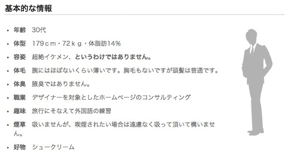 lostvirgincafe声称提供的“帮助”是免费的,申请人只需支付初夜发生时的房费。而目前,所有帮助都由一位名叫雅人(音译)的男子提供。网站上提供的资料显示,他30岁出头,职业是网站设计咨询师。体脂肪含量仅为14%,头发发量适中,虽然长相不算英俊,但没有奇怪的体味。