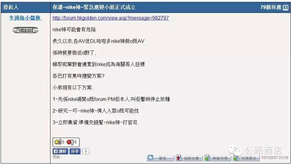 也就在07年7月香港《明报》报道了NIKE,称他是“咸湿版古惑天皇”,统计了他累计发片量4600套,单主题浏览次数超过1.5万次,同时也指责他带坏未成年人。NIKE也第一次曝光在主流媒体的视线里,这也为他的退出埋下了导火索。部分网民担心明报会导致nike为避风头而宣告引退,因此对明报报导感到十分不满。有网民声言如果nike因而停止发片,会向明报追究责任。其后更有高登会员成立紧急应变小组,商讨如何帮助nike 脫离险境。