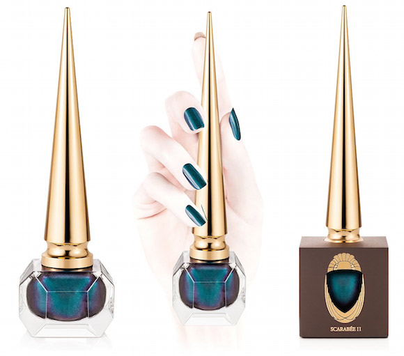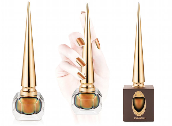 “红底鞋”Christian Louboutin的指甲油最近也推出了含有贝壳光泽的新指甲油,能闪瞎周围人的眼睛。新指甲油据说是以古埃及象征太阳神的圣甲虫为设计灵感,取名Scarabée系列。