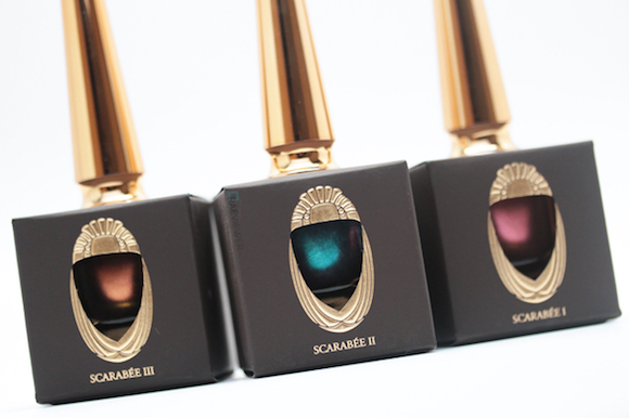 圣甲虫在古埃及是有着图腾光环的动物,隶属于金龟子科。这种虫的身体看上去好像罩着一层青铜色泽的、或绿或蓝的盔甲。传说当法老死去时,他的心脏就会被切出来,换上一块缀满圣甲虫的石头。不过看外包装,看透指甲油颜色的“小窗口”设计除了像圣甲虫,也挺像“埃及艳后”克里奥帕特拉。