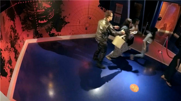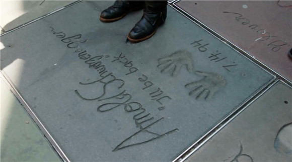 在蜡像馆还玩不够,施瓦辛格还要走到星光大道上去晃悠。