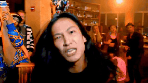 首先你会发现巴黎世家(Balenciaga)的创意总监Alexander Wang(王大仁),以及Moschino的创意总监Jeremy Scott。Alexander Wang穿着标志性的黑色上衣,甩动着他的长发,一边跟着歌词唱一遍扭动着身体。很显然他不是特别擅长跳舞,舞姿生硬略显尴尬,从MV截图上看,他的表情还挺魔性。