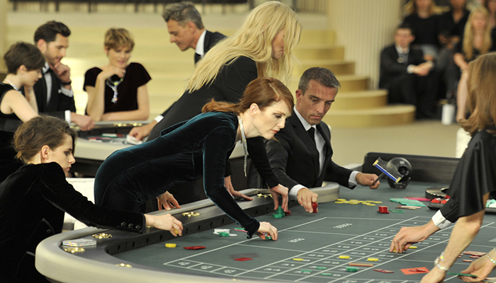 暮光女克里斯汀·斯图尔特是第一个作为开场嘉宾出场的,穿了一身Chanel黑套装。随后朱丽纳·摩尔、Rita Ora 相继走进赌场,坐进正中心的轮盘赌桌。同桌的还有法国歌手Vanessa Paradis 和她与前夫约翰尼·德普的女儿 Lily Rose。