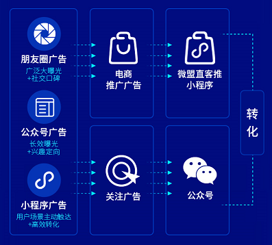 为了让这个生态圈协同发展,腾讯广告和微盟携手推出“腾盟计划”,将在全国范围内招募成长型中小企业入驻微信小程序和公众号并进行推广投放,赋能电商企业实现私域流量的高效变现,打造小程序购物闭环。