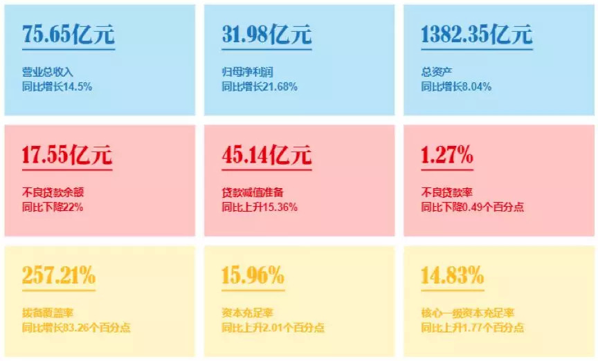 截止2018年末,公司的不良贷款率为1.27%,较上年同期下降了0.49个百分点;拨备覆盖率为257.21%,较上年同期上升了83.26个百分点。