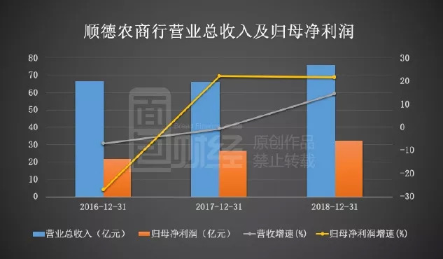 截止2018年底,顺德农商行实现营业收入75.65亿元,较上年增加9.58亿元,增速为14.5%;实现归母净利润31.98亿元,较上年同期增加5.7亿元,增幅为21.68%。