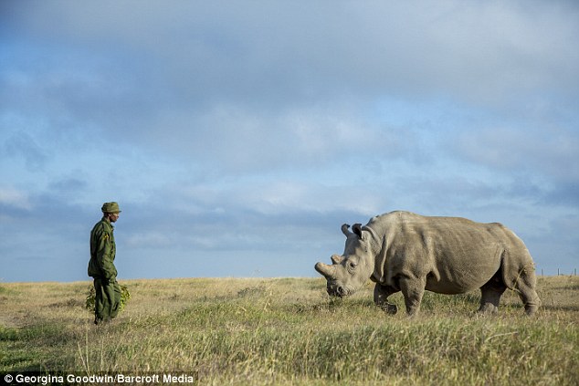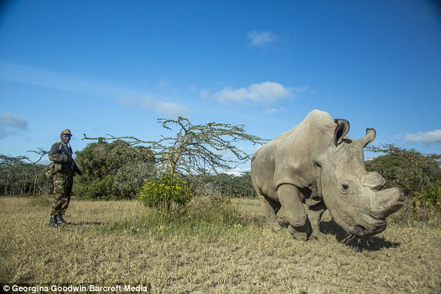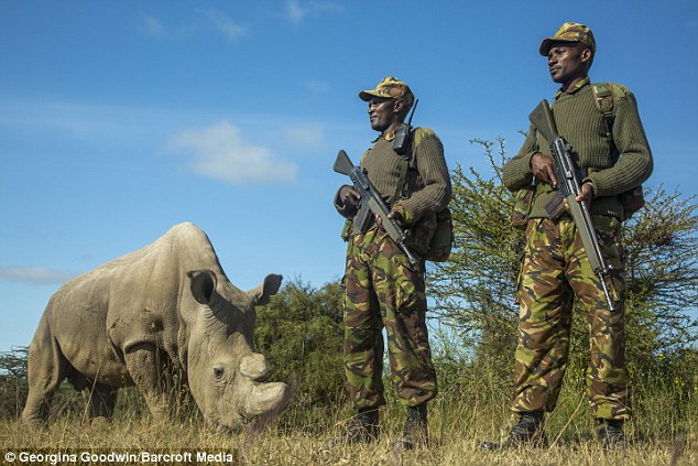 为了防止盗猎者伤害世界上最后一头白犀牛,一个由40人组成的团队全副武装24小时守护着苏丹。