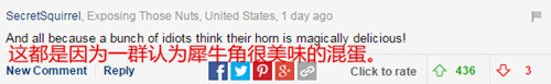 根据世界野生生物基金会的资料,1960年代,世界上有超过2000头的北方白犀牛,但是大量的偷猎行为让他们成为了濒危物种。犀牛角的价钱比远东可卡因的卖价还高,于是,偷猎者在金钱的诱惑下频繁向犀牛下手。90年代,犀牛角每公斤的售价约合人民币1700至5400元,而现今的价格已经飞涨至每公斤40万至47万人民币。