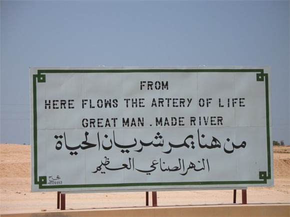 利比亚前领导人穆阿迈尔·卡扎菲(Muammar Gaddafi)在执政的42年时间里,最大的一个工程就是大人工河(Great Man-Made River)。卡扎菲希望给利比亚国民提供优质的水资源,并且使沙漠绿化,让利比亚在粮食生产上可以自给自足。为此,卡扎菲下令在国内修建一个大型的人工供水与灌溉工程,将位于撒哈拉沙漠中的古地下水通过巨型管道输送到地中海沿岸的利比亚各大城市。