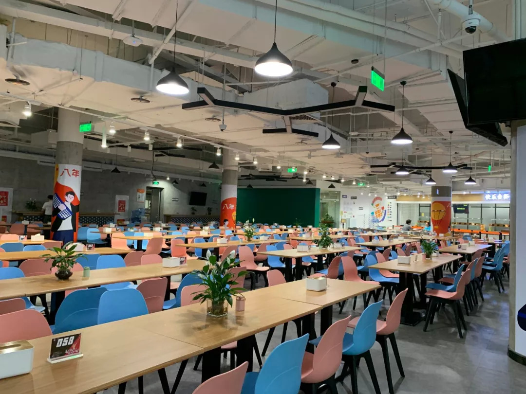 整个食堂有30多人和他一样,都在为早上7点30分开始的早餐时间做准备。一天下来,包括早中晚餐和夜宵,他们平均要干掉2吨半的食材,制作出200多道每天不重样的菜。到了中午,食堂里的600个座位和4个站立吧台,能承接1400多人。这还只是其中的一个食堂而已。