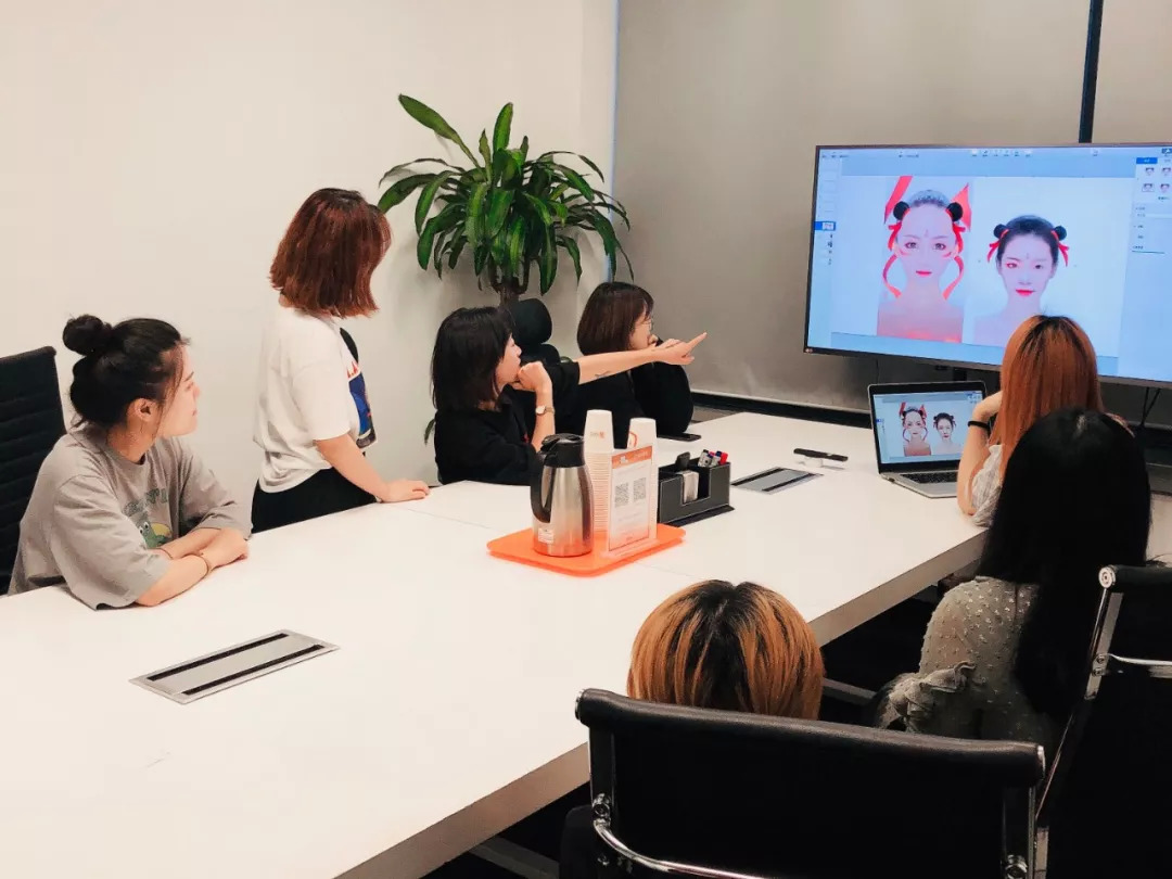 一甜相机团队正进行一场头脑风暴,对一甜相机的贴纸、滤镜做版本更新