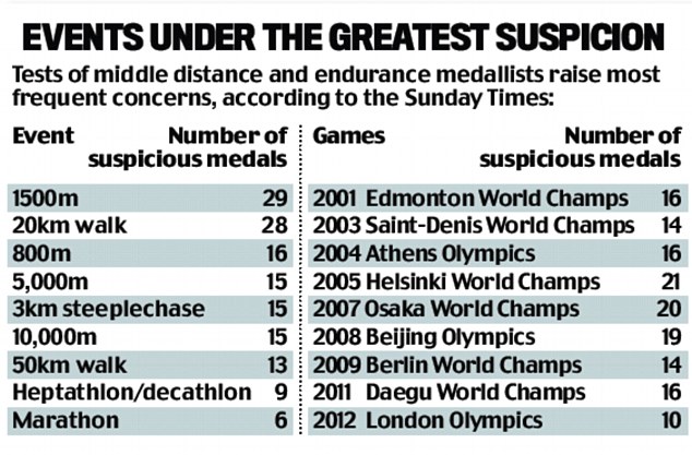 据称,检出可疑血液样本的运动员们中,过去11年来在奥运会和世锦赛的田径长距离项目中共获得了146枚奖牌,其中包括55枚金牌。