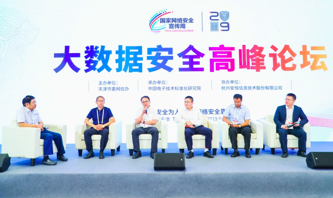 9月17日上午,由天津市委网信办主办,中国电子技术标准化研究院承办、杭州安恒信息技术股份有限公司协办的“2019年国家网络安全宣传周——大数据安全论坛”在天津市成功举办。论坛以“新时代下大数据安全新态势”为主题,中国工程院院士沈昌祥、中央网信办网络安全协调局处长陈吉学、国家市场监督管理总局标准技术管理司副处长刘大山、中国信息安全研究院副院长左晓栋、中国电子技术标准化研究院信息安全研究中心主任刘贤刚、杭州安恒信息技术股份有限公司首席安全官刘志乐以及来自部分省市大数据局领导、网络安全企业、科研院所、高校等200余位代表参加了论坛。