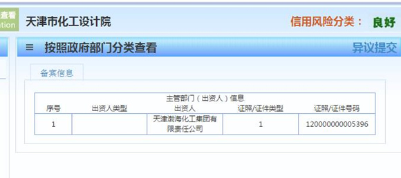 界面查询工商登记资料了解到,天津市化工设计院的出资人即为天津渤海化工集团有限责任公司。