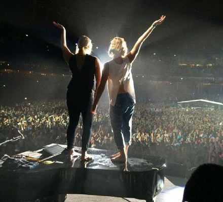 俩人几乎形影不离,继月初相偕到海岛度假后,她们周四一起出席66岁资深歌手比利乔(Billy Joel)在芝加哥的演唱会,她们打赤脚一起活跃到舞池中央,给世界两个迷惑的背影。