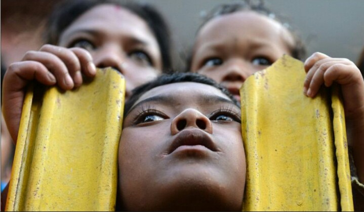 这些令人震惊的照片来自今年的德坡卡锐节(Deopokhari)节,这场一年一度的竞赛,其中一个表演环节就是村民们一起把这只山羊宝宝活活撕碎,当地的孩子们只能眼睁睁地看着这些残酷的画面。