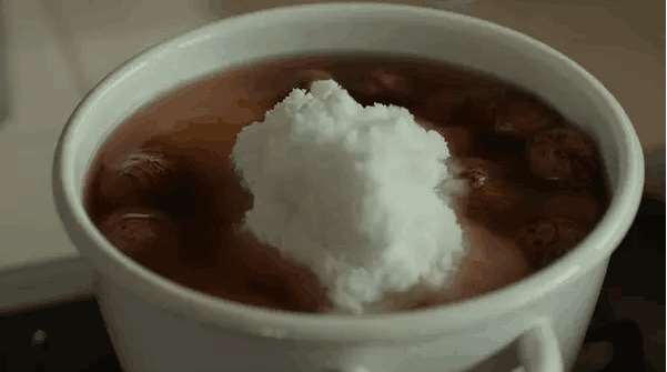 ◆ 小火煮干(1.变成深色 2.用筷子沾一点滴入水中,凝成小球就说明干了);