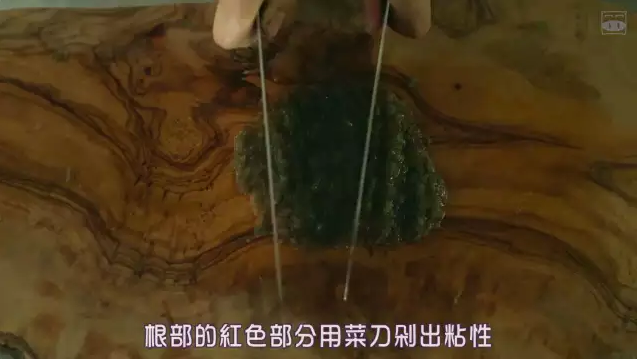 ◆ 雨久花根部红色部分,洗净剁出粘性;