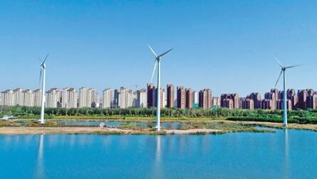 中新天津生态城内建立了城市并不多见的“大风车,”矗立在蓟运河口,过去一年,生态城风电场项目共发电381万千瓦时。造型如“小飞机”的风光互补路灯,已经融入了日常生活,是中新天津生态城探索可再生能源利用的见证者,为城市提供着必要的能源。
