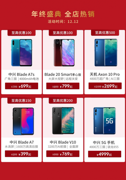 此外,中兴Blade系列包括Blade 20 Smart孝心版、Blade A7s等多款产品也将开启直降、免息等多重优惠。其中Blade 20 Smart孝心版搭载6.49英寸HD+水滴大屏,内置远程协助功能,集智慧语音、AI三摄、长续航等功能于一身,操作便捷简单易用,是关爱父母、表达孝心的购机首选。2019年最后一场购物狂欢节,还不赶紧上车!