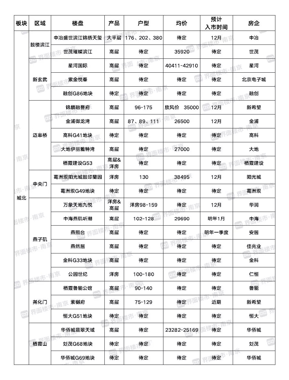 城北板块共有24盘将上市,分布于鼓楼滨江、新玄武、迈皋桥、中央门、燕子矶、尧化门、栖霞山板块。最值得关注的是,明年燕子矶、迈皋桥30000元/㎡的价格可能将一去不复返了。