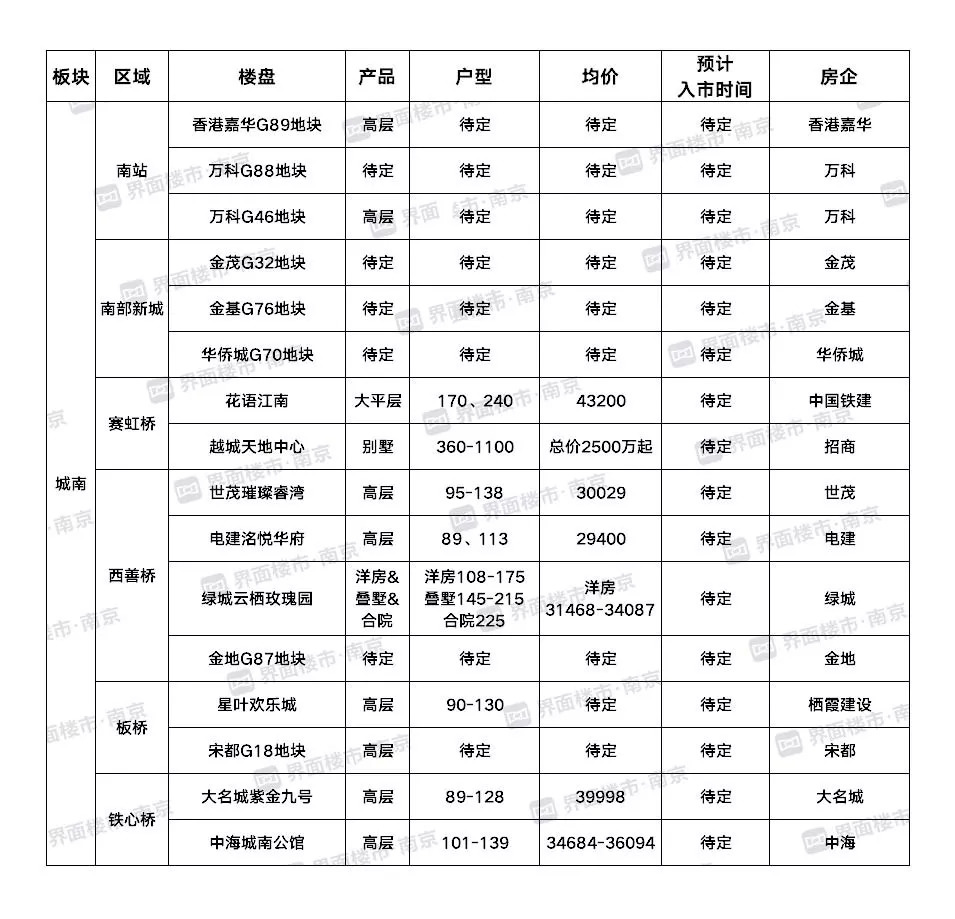 城南板块共有16盘将上市,分布于南站、南部新城、赛虹桥、西善桥、板桥、铁心桥六大板块,囊括刚需、改善两大客群。