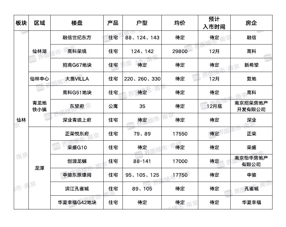 除了高价地外,不少限价福利盘也将上市,如碧瑶花园三期、华新城,两大“鸽子盘”上市时间一直是个谜,不过,在12月19日上午,南京市住房保障和房产局举办了《人才购买商品住房工作媒体通气会》,2020年一季度73个商品房拟上市,其中华新城预计2020年2月上市,有部分房源将作为人才房出售。