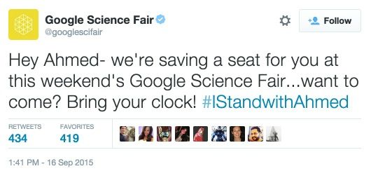 Google Science Fair的官方Twitter也向其发出了邀请: