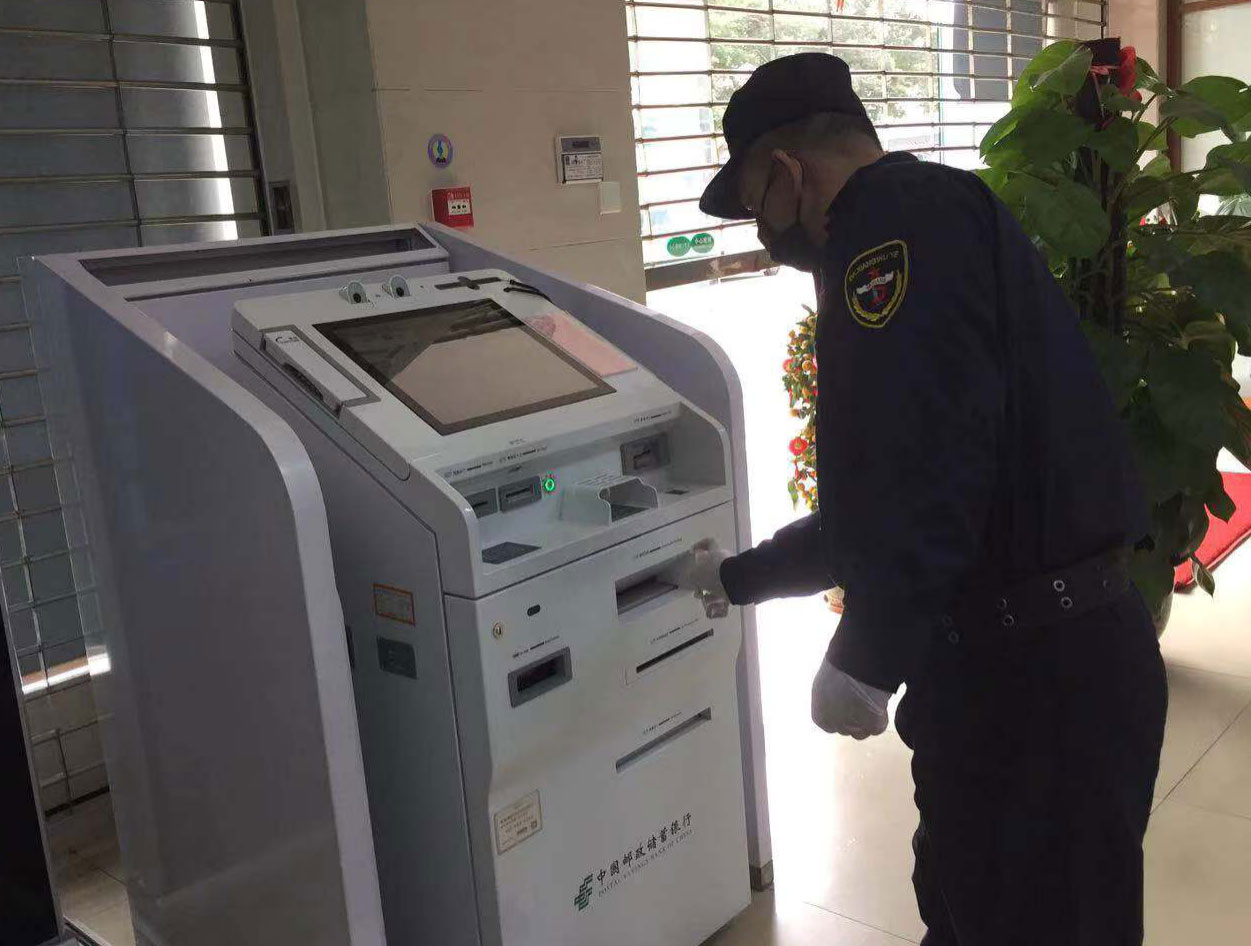 邮储银行海口市分行迅速动员全行力量采购并储备口罩、消毒液、洗手液、长胶手套等安全防护用品以及红外线体温测试仪,第一时间为所有营业网点配备到位,组织人员对自助设备进行消毒,确保客户安全便捷使用。