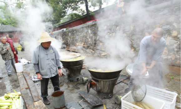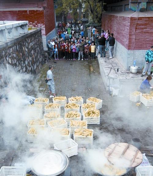 少林寺免费发放煮玉米!第一锅被哄抢