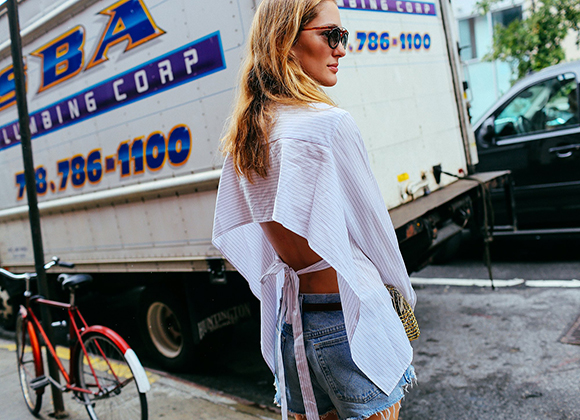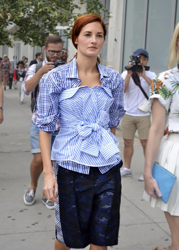 衬衣本是亦庄亦谐的百搭品,像罩衫那样罩在前胸,就成为露背装;解开扣子用长袖打个结,就成为蝴蝶结抹胸。