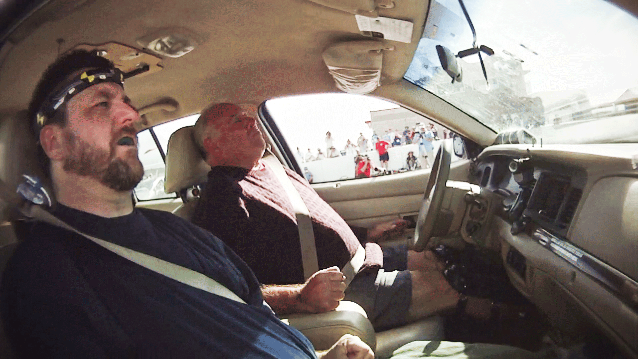 研究所的年会有一个最吸引人的环节,就是在拉斯维加斯赛车场内进行有真人在车内的碰撞试验。受邀参会的人士来自多个行业,包括交通事故独立调查机构、保险公司调查员和执法单位人员等。今年是第十三届。Haight没有丝毫犹豫,立刻就高兴地同意让我坐上他开的车,准备去撞另一辆车。