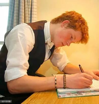 这生拉硬拽的姿势加上左撇子的书写习惯,再加上锃光瓦亮的秃噜头。。。实在是标志极了!近观一眼,心疼得想给王子买一支护手霜。。。