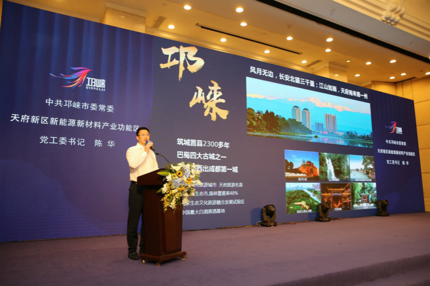 随后,成都市投资促进局驻深圳投促中心主任彭天宇推介了成都市营商环境和产业优势。邛崃市委常委、天府新区新能源新材料产业功能区党工委书记陈华详细介绍了邛崃市人文历史、资源禀赋,重点围绕全市主导产业体系,全力构建先进材料产业生态圈,阐释了天府新区新能源新材料产业功能区“独立成市”的规划理念、交通区位优势、产业承载基础,并针对电子新材料产业发展规律和企业需求特点,重点展示了功能区高品质科创空间、创客中心、“独角兽”工场、浩联云谷标准化厂房及5G智慧运营中心等产业孵化培育载体,推出了系列产业扶持政策。