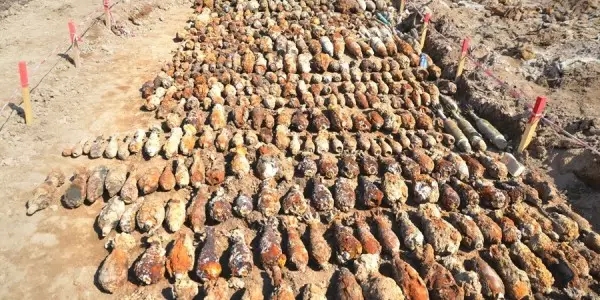 ▲这是我在艾哈代布项目刚开工的时候拍的一张照片,那时候现场已经清过地雷了,这是清出来的未爆物,就是没爆炸的炸弹。当时要求员工必须在圈定的安全区内活动,不能踏出半步;
