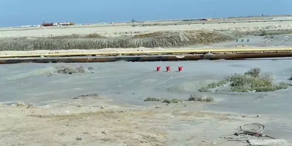 ▲大家再看这张照片,这是有一次,我去采访外线工程,从鲁迈拉项目坐车到它南边的一个站,已经接近科威特的边境了,油田管线的旁边都会有一个沙袋,沙袋另一面刷成了红色,这是未爆物的提示标志,正面白色的这边是安全的,红色的那边就提示是没有清过雷的,可能有地雷或者炸弹。