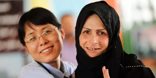▲这是在哈法亚项目一期投产庆典上我和一位伊拉克妇女的合影,这位女士并不认识我,也不太会说英语,我们交流起来都比较困难,但是她见我是中国人,而且也是女性,就特别开心地搂着我的脖子跟我照相,很亲热。其实一般伊拉克妇女是比较保守的,社交场合也会与人保持距离,但是那天她对我的真诚和热情真是感染到我,这也说明我们中国人在当地人眼里是值得信任的朋友。