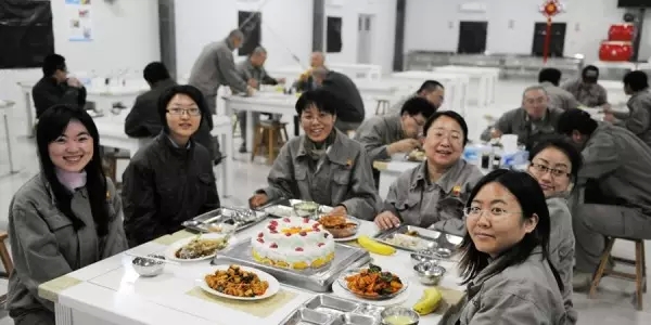 ▲这张照片也特别有意思。是2011年三八妇女节拍的,项目食堂专门给我们几个女员工做了一个蛋糕还有几个好菜,还特意给我们每人都发了块巧克力庆祝。当我把这照片发给国内的同事显摆的时候,他们的注意力却都在我们身后的男生那里,说怎么感觉你们那儿的工人看着怎么这么像劳改犯呢。我一看,还真是。因为前两天刚过完中国农历的2月2,北方人有在龙抬头这天理发的习俗。项目上没有专门的理发师,只有一个电推子,好多小伙子索性都互相推了光头,加上我们那儿的工服还是土黄色的,这么一看可不就像劳改犯嘛。